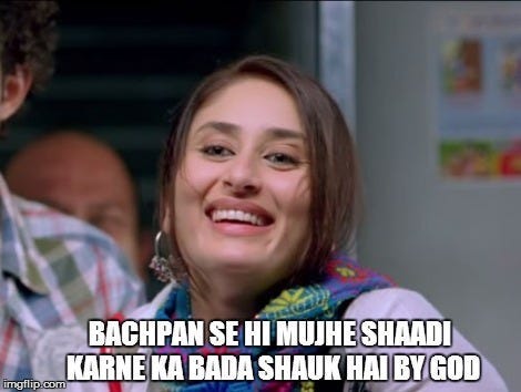 Everyone has been on the other side of this weapon of mass destruction. If you are an Indian you know the omniscience of this one. The question has a certain extraordinary nature, it fissions out of nowhere, and if the gathering is the marriage of another sordid soul, then this question acquires an ideal context too.